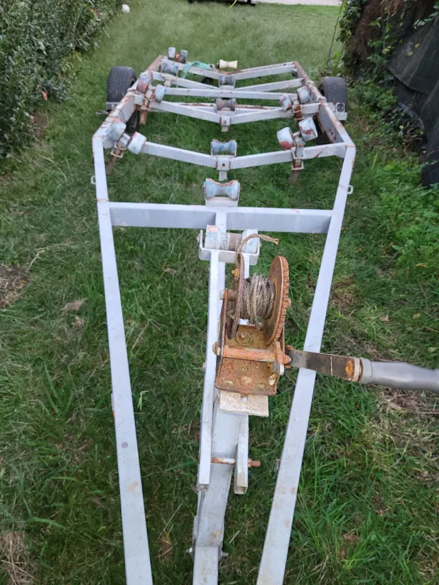 Remolque para embarcacion de hasta 6 metros de eslora. Es muy grande, he subido una lancha de 6.50 sin que saliera del carro .Sin documentación