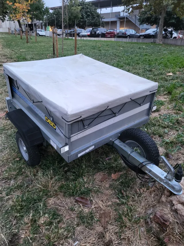Detalles del productoRemolque pequeño NUEVO de restreno se ha usado dos veces solo mantiene las pegatinas que bienen de nuevo en la llanta en lanza. Tengo la factura de compra en norauto, tiene lona para tapar la carga tiene rueda repuesto la puerta trasera abatible y desmontable neumaticos nuevos luces perfectas.repito remolque nuevo para reestreno mejor verlo sin compromiso