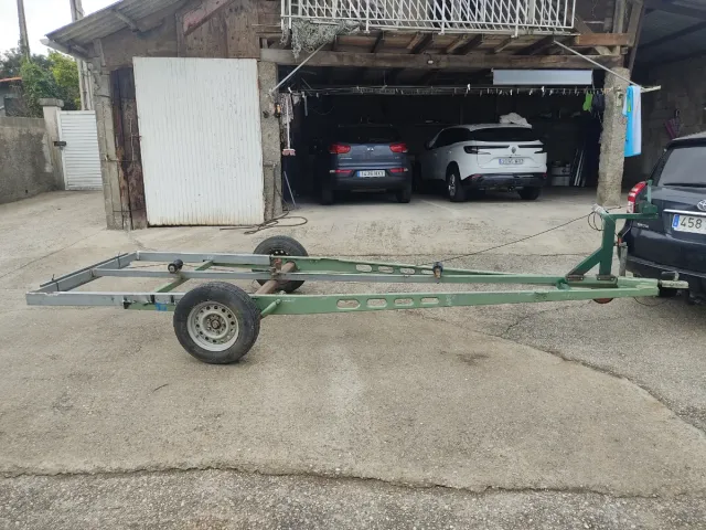 Remolque metálico para transportar embarcaciones. - Estructura robusta de color verde. - Dos ruedas. - Eje con suspensión. -precio a convenir