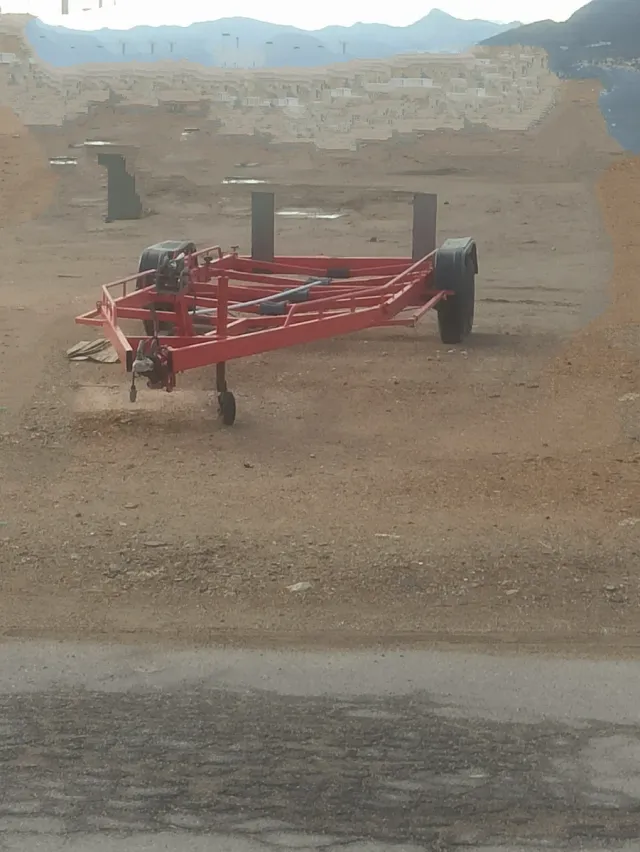 Remolque de color rojo, diseñado para embarcaciones de hasta 850 cm. - Estructura metálica. - Ruedas incluidas. - Cabrestante. - Rueda jockey.