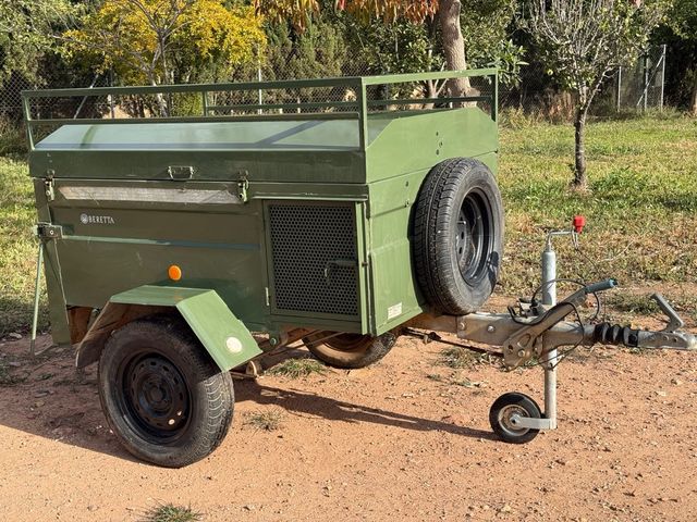 Detalles del productoRemolque para perros en perfecto estado, marca Revilla. Largo 1,50, ancho 1,10. Tres compartimentos grandes. Totalmente forrado interiormente con tablero marino contrachapado fenolico. Dispone de freno de inercia documentado. Pintura antioxidante de alta calidad. Con la documentación en regla. Tapa metálica con baca con apertura abatible y tablero portaobjetos. Ruedas grandes de coche R13 en buen estado.