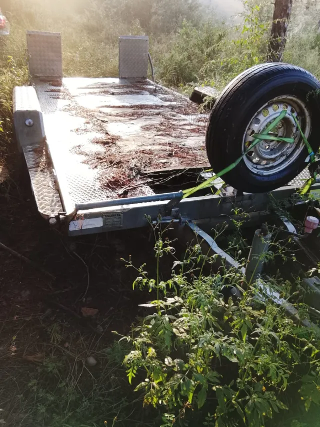 Remolque basculante para transporte de coches. Con documentación - Plataforma de carga. - Rueda de repuesto incluida. - Rampas de acceso.
