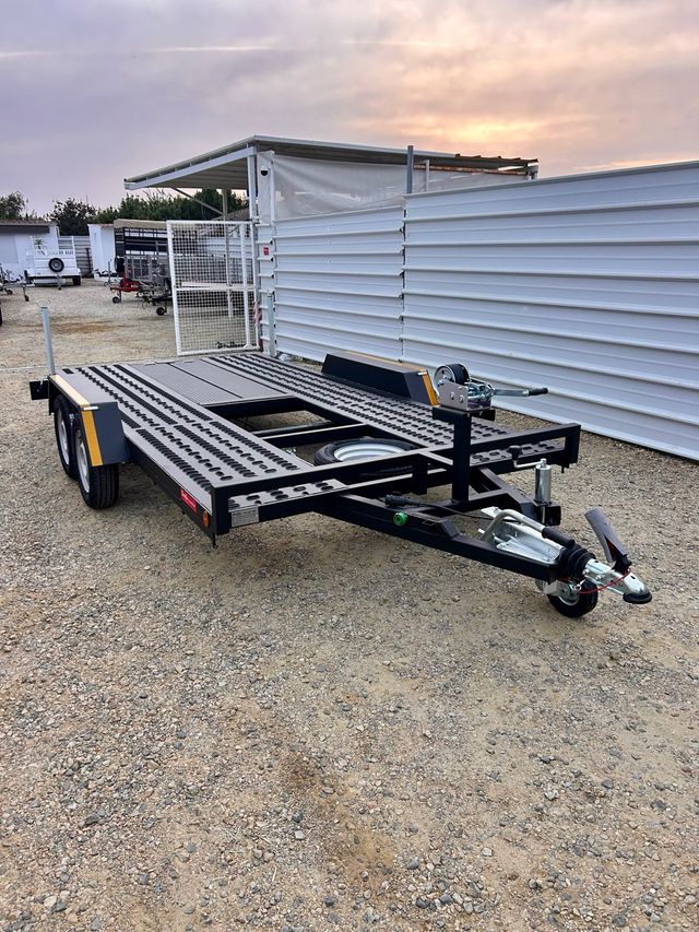 Detalles del productoRemolque tipo batea diseñado para el transporte de vehículos.