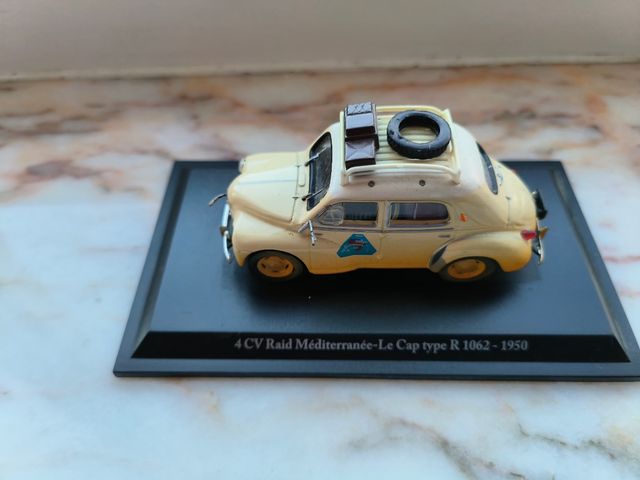 Réplica a escala 1/43 del Renault 4 CV Raid. - Modelo del coche: Renault 4 CV. - Escala: 1/43. - Edición especial Raid Mediterranée - Le Cap type R 1062 - 1950.