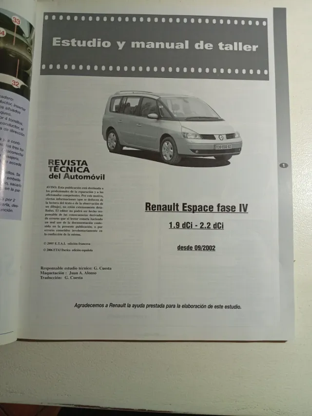 RENAULT ESPACE MK4 1.9 2.2 DCI MANUAL DE TALLER