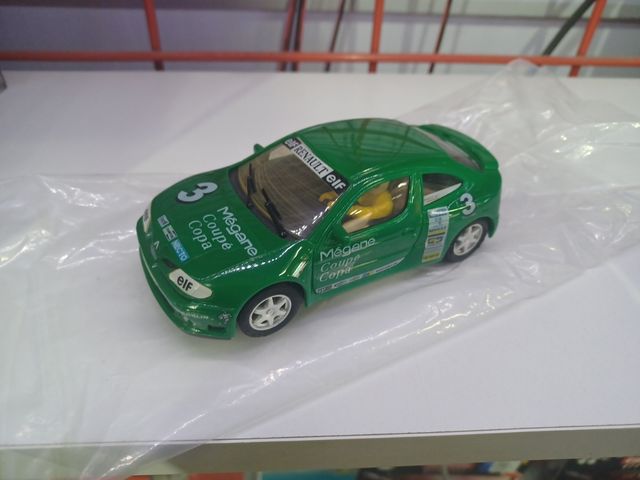 Detalles del productoCoche de slot Renault Megane Coupe de la marca Ninco. Scalextric. Prácticamente sin uso, en buen estado. Defectos en el cristal y otro casi imperceptible en el techo