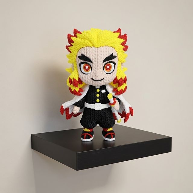 Detalles del productoRengoku - Demon Slayer, impresa en 3D con textura estilo crochet que le da un acabado único y llamativo.✨