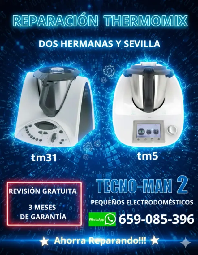 Detalles del productoReparación de Thermomix tm31/tm5/tm6 en Dos Hermanas y Sevilla. Revisión y presupuesto gratuito. Garantía. Reparación desde 30€. Consulta cualquier duda sin compromiso. Ahorra Reparando!!!