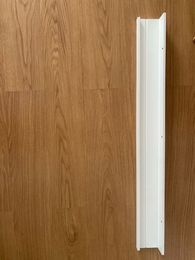 Repisa blanca de Ikea. Ideal para marcos de fotos, llaves, jarrones, figuritas...