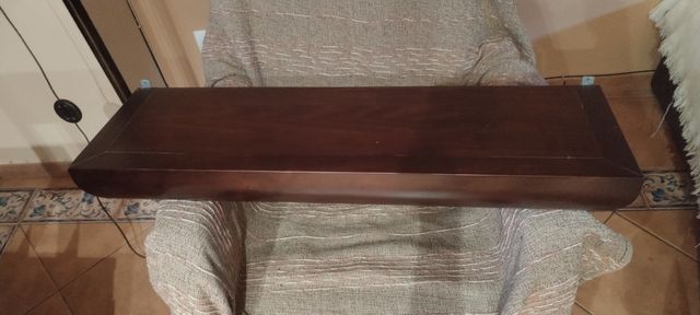 Detalles del productoElegante repisa de madera con acabado oscuro. Perfecta para añadir un toque de estilo a cualquier pared.