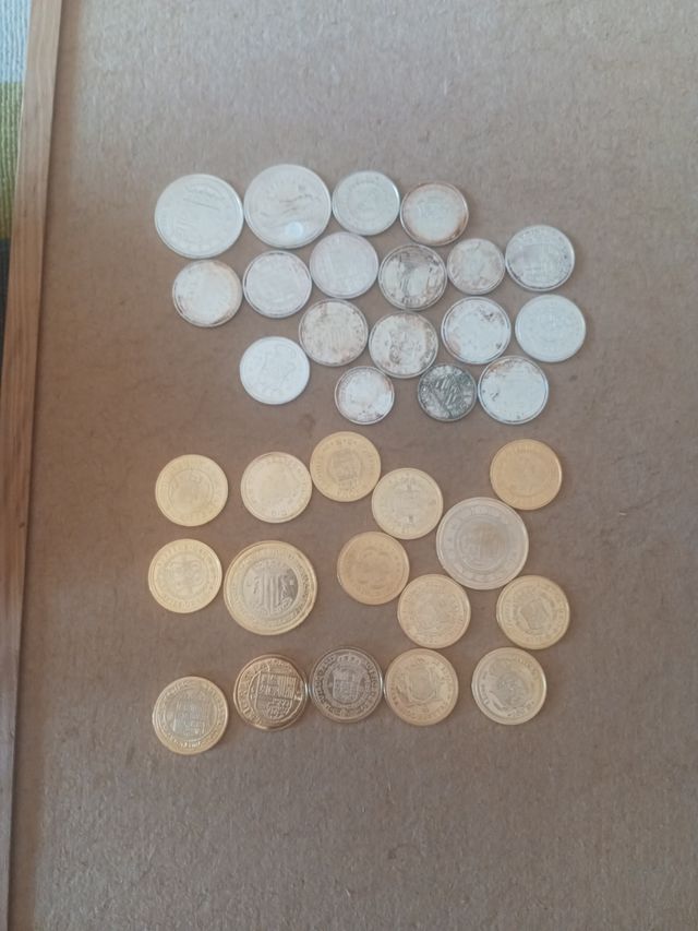 Detalles del productoConjunto de réplicas de monedas españolas bañadas en oro y plata.