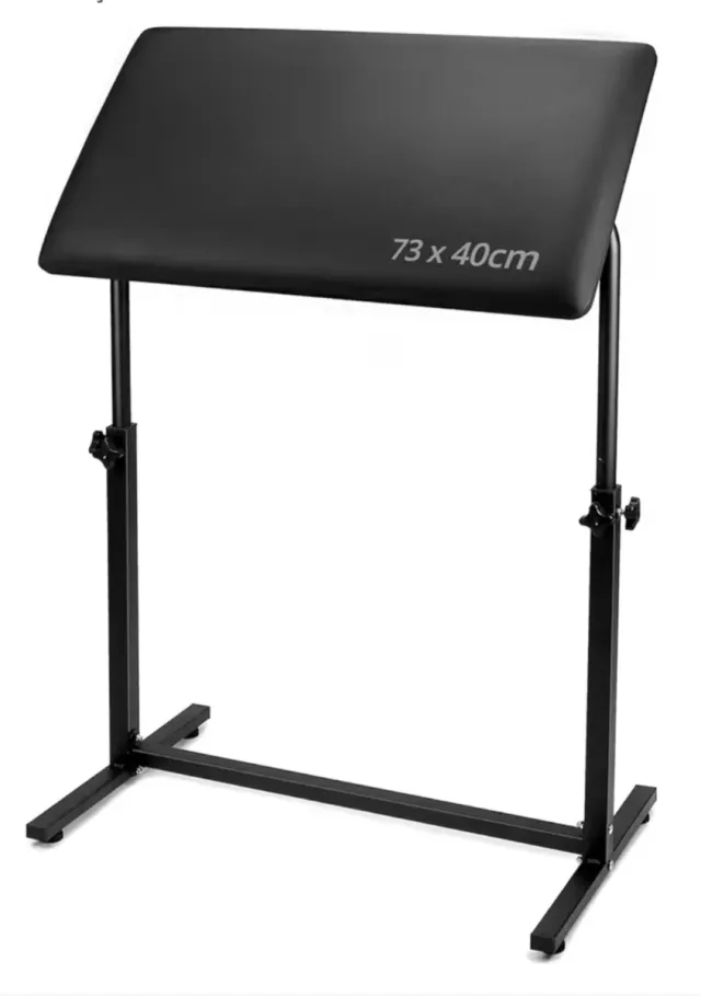 Detalles del productoSoporte para reposabrazos de tatuaje profesional Soporte para reposapiernas con almohadilla de esponja inclinable de 180° Tamaño 73x40x5 cm, altura ajustable 67-100 cm