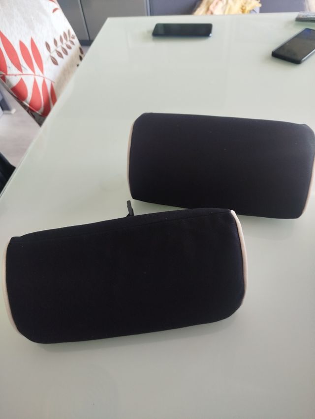 Detalles del productoSe venden dos reposacabezas para coche. Son de color negro y tienen un ribete beige. Están en buen estado.