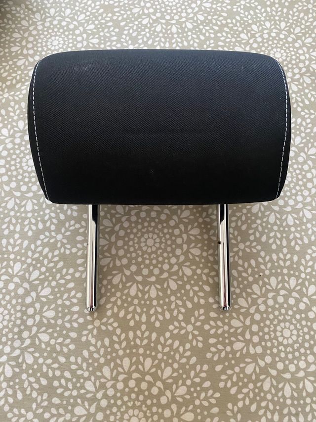 Reposacabezas trasero para vehículos del grupo VAG. - Color negro. - Costuras blancas. - Varillas metálicas cromadas.