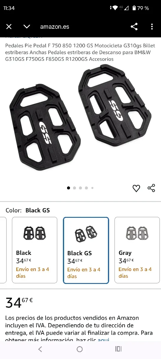 Reposapiés de alta calidad para motos BMW GS. - Color: Negro GS. - Diseño ancho para mayor comodidad. - Fabricados en aluminio billet.