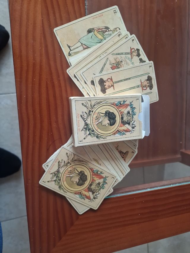 Detalles del productoReproducción de una baraja de cartas taurina del siglo XIX. Las cartas presentan ilustraciones detalladas de figuras taurinas y escenas relacionadas.