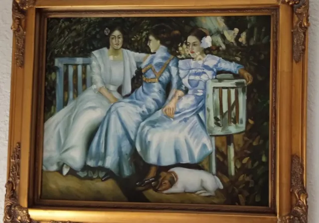 Detalles del productoReproducción de un cuadro inspirado en el estilo de Joaquín Sorolla, representando a una mujer con sus hijas en un entorno natural.