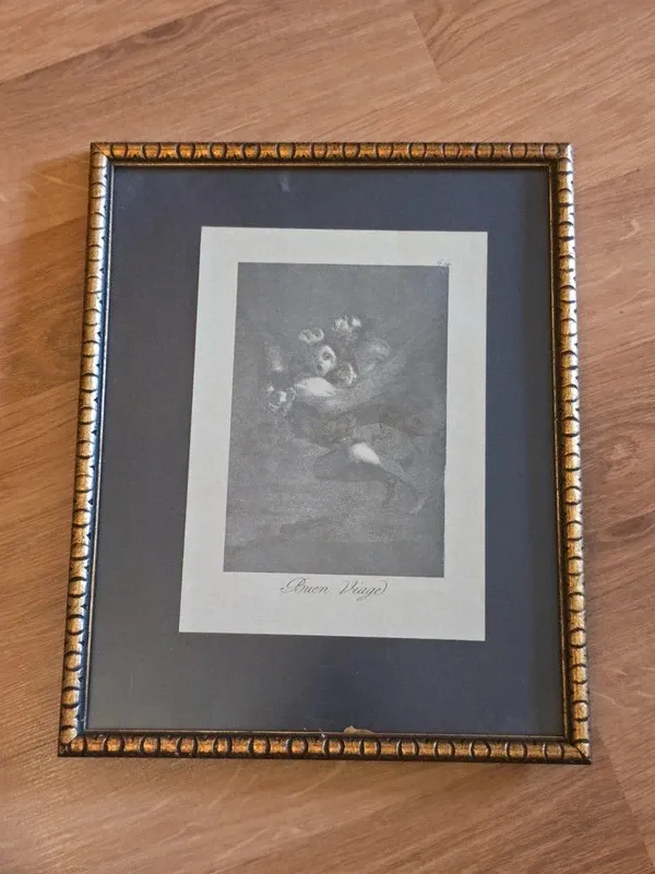 Reproducción de litografía de Goya número 64 "Buen Viage" del siglo XX. Se encuentra en muy buen estado e incluye un marco.