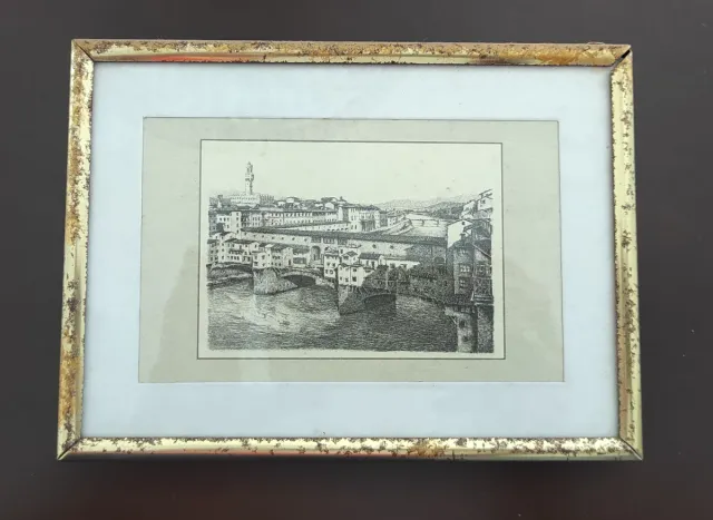 Detalles del productoReproducción de un grabado de la ciudad de Florencia, el marco, como ya se ve, está oxidado. El grabado en sí está en buenas condiciones.