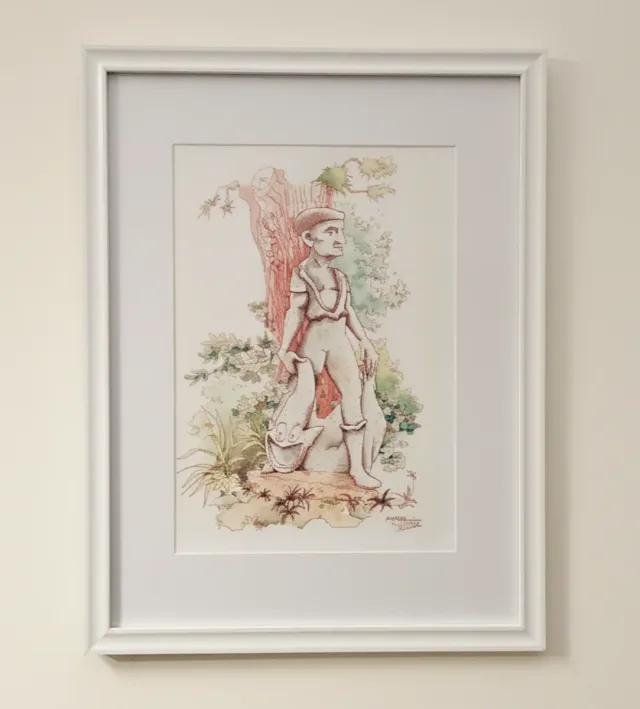 Ilustración artística enmarcada con una figura y un árbol. -Tamaño A4 - Dibujo a color con detalles. - Marco blanco incluido.