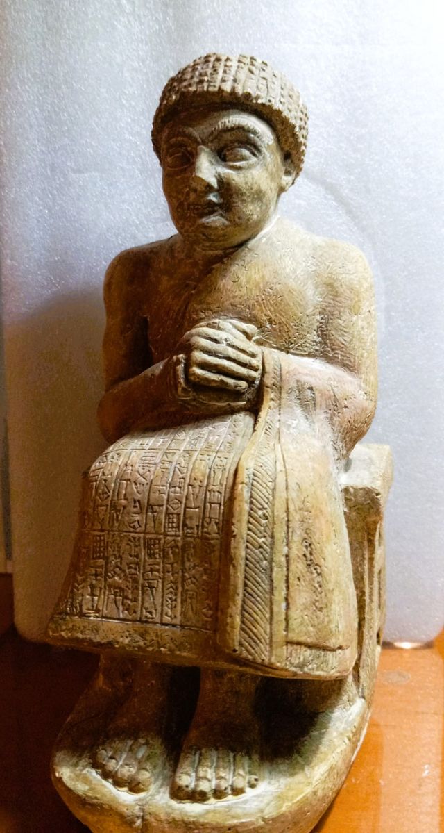Detalles del productoReproducción detallada del rey sumerio Gudea de Lagash. En torno a 2000 a.JC. Una pieza con inscripciones cuneiformes, realizada en piedra caliza (pesa bastante). Altura 20 cm; Ancho 10 cm y fondo 11 cm. Envíos solo a través de Inpost (no olvides seleccionarlo al hacer tu compra