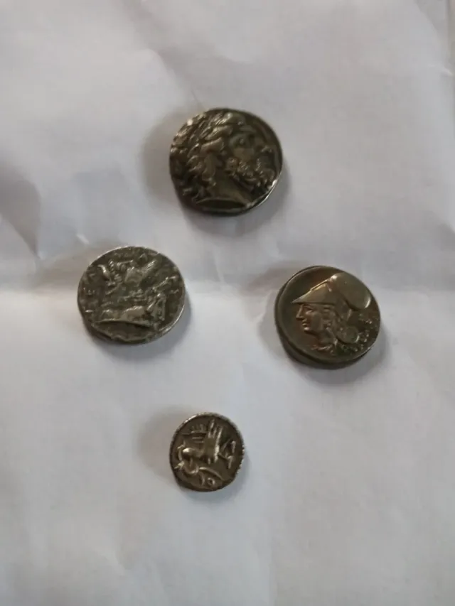Conjunto de reproducciones de monedas antiguas griegas. - Diseño detallado. - Aspecto envejecido.