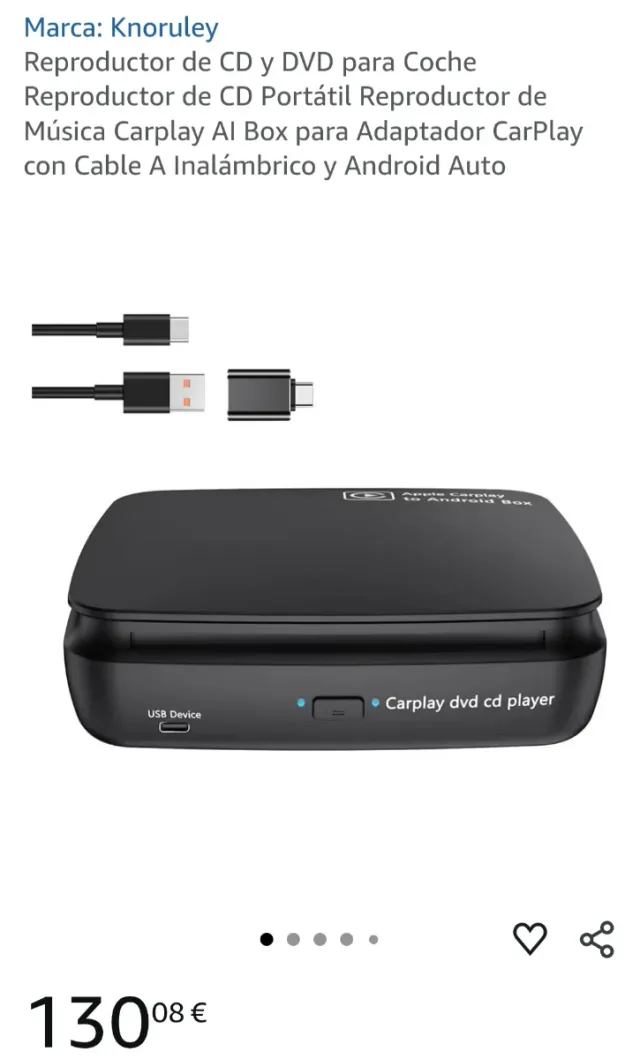 Detalles del productoReproductor de CD y DVD para coche, compatible con CarPlay y Android Auto.