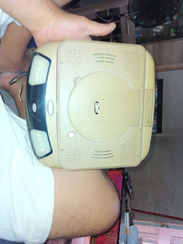 Reproductor DVD para coche, color beige, en buen estado. - Incluye pantalla. - Lleva altavoces incorporados. - Dispone de luces integradas.
