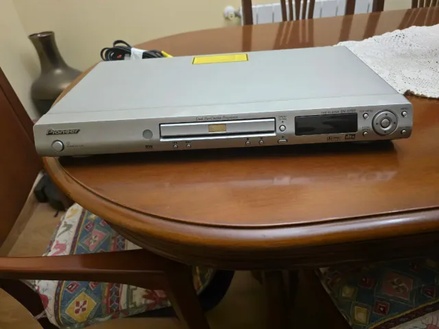 Reproductor de DVD de la marca Pioneer. Con mando a distancia - Modelo DV-2750. - Diseño plateado. - Frontal con bandeja de disco y botones de control.