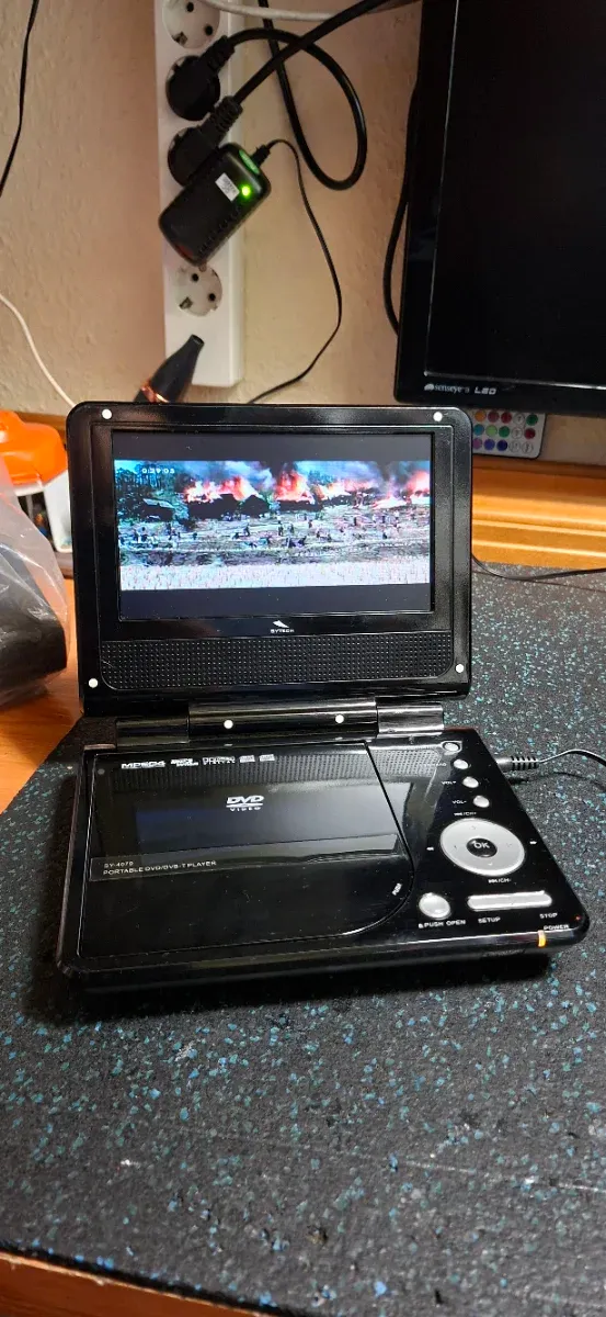 Detalles del productoReproductor de DVD portátil en color negro. Ideal para llevar tu entretenimiento a donde vayas.