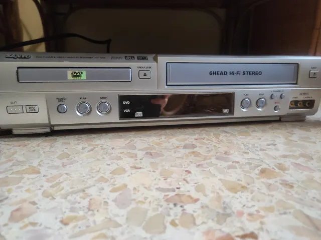 Detalles del productoReproductor combinado de DVD y VCR de Sanyo. Permite reproducir DVDs* y cintas de VHS.