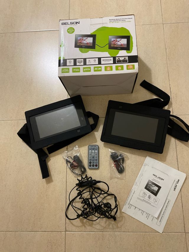 Detalles del productoReproductor multimedia dual Belson para coche, ideal para viajes largos.