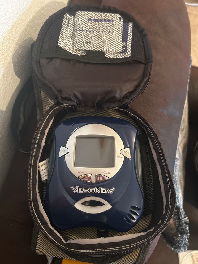 Detalles del productoReproductor portátil VideoNow en color azul, ideal para llevar tus contenidos multimedia a donde quieras. Incluye su funda protectora.