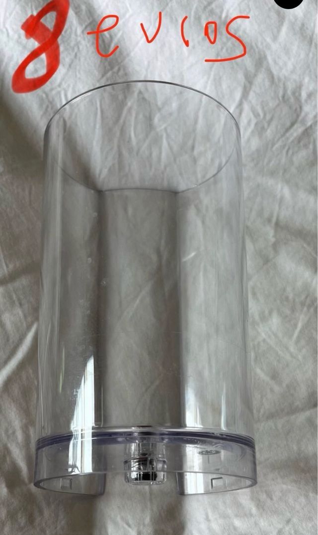 - Material: Plástico transparente y base de plástico.