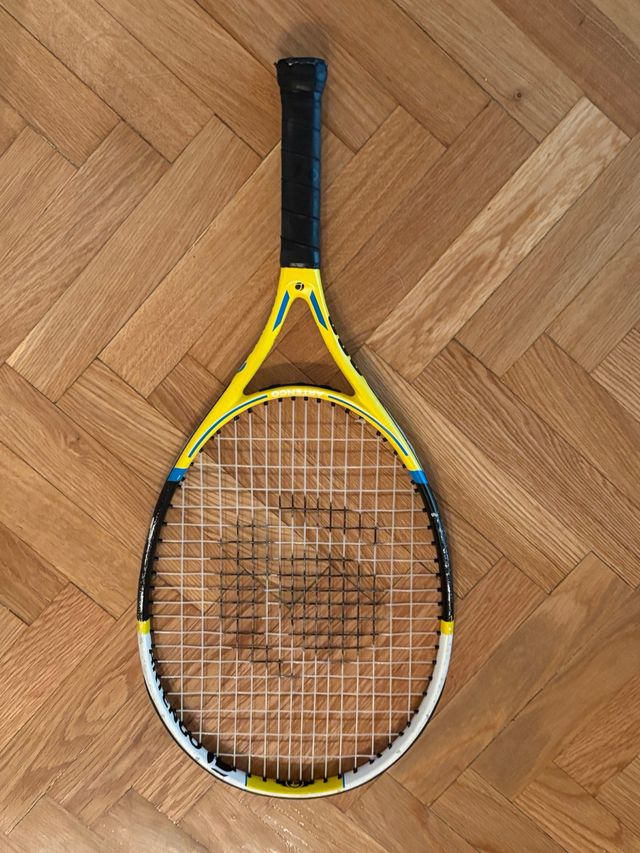 un raqueta de tenis talla junior bastante buena para empezar y poco pesada