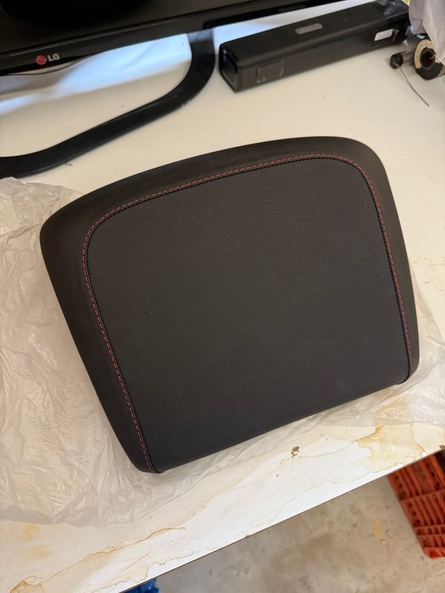 Detalles del productoRespaldo de baúl en color negro con un diseño elegante y costuras rojas.