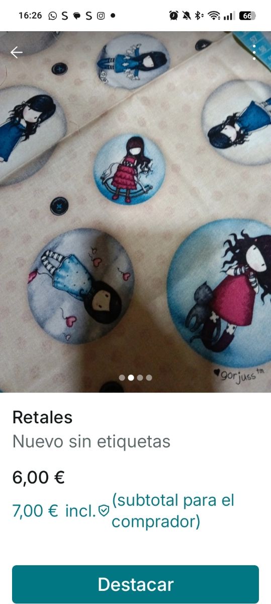 Retales de tela con divertidos diseños de Gorjuss. - Nuevos, sin etiquetas. - Incluye varios círculos con ilustraciones. - Diseño de la marca Gorjuss.
