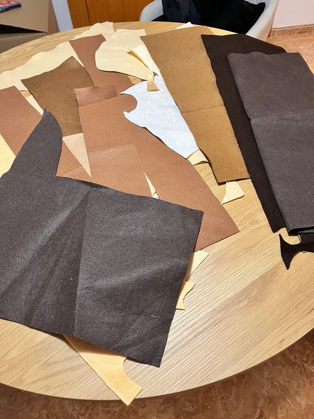 Detalles del productoLote de retales de fieltro en diferentes tonos marrones y beiges. Ideal para manualidades y proyectos de costura.