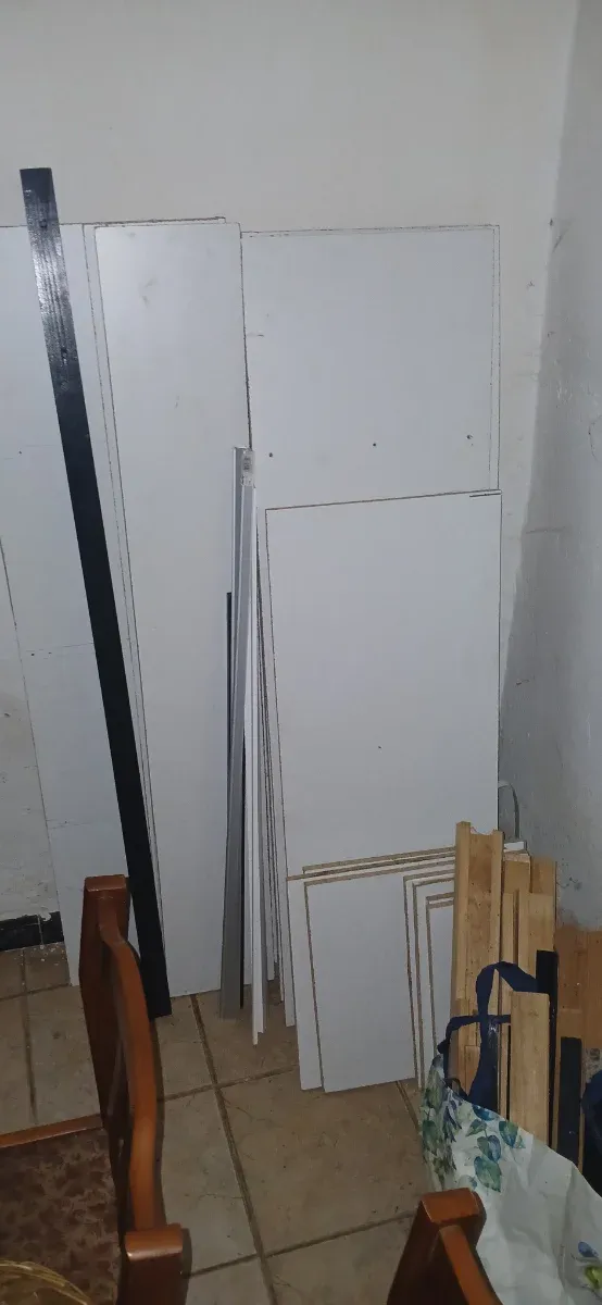 Lote de retazos de melamina, madera de pino y listones. Para mas informacion privado y miramos lo que pueda interesarle y precio.