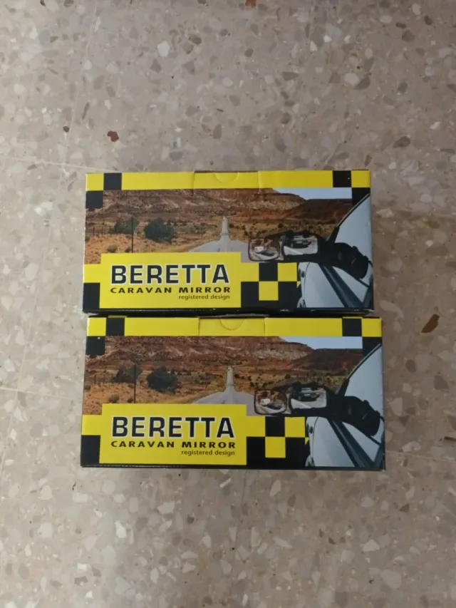 Set de dos retrovisores Beretta para caravana. - Diseño registrado. - Incluye dos unidades. - Nuevos sin utlizar, en su caja.