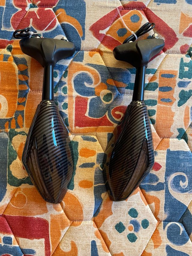 Detalles del productoRetrovisores intermitentes de carbono para Yamaha R6R. Están en muy buen estado.