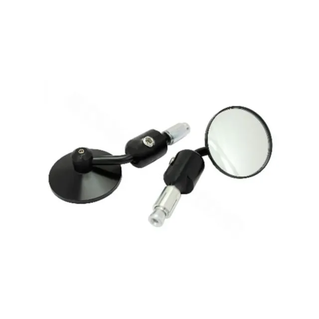 Detalles del productoPar de retrovisores negros para el final del manillar de motocicleta. Diseño elegante y funcional de estilo vintage o custom.