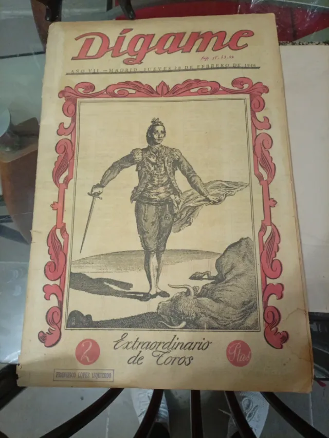 Detalles del productoNúmero especial de la revista Dígame dedicado a los toros, publicado en Madrid en 1946.