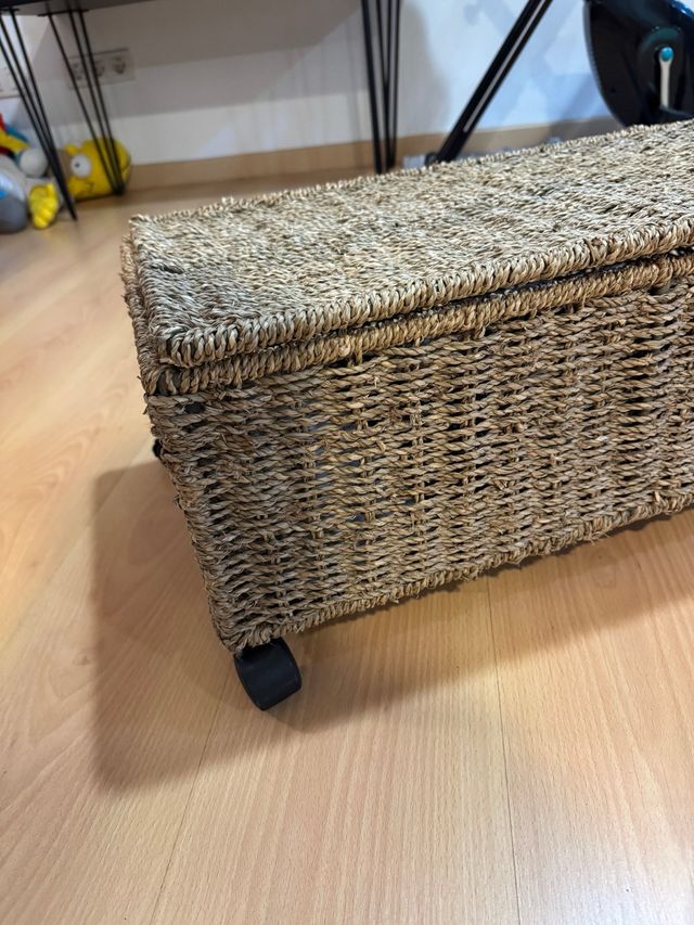 Revistero de mimbre con ruedas