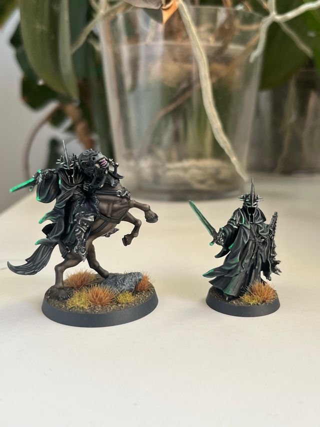 Detalles del productoFiguras del Rey Brujo de Angmar de la saga Middle-earth. Incluye una figura montada y otra a pie.
