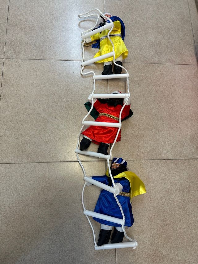Figuras de Reyes Magos para decorar tu balcón o casa. Vienen colgados de una cuerda. - Reyes Magos con túnicas de colores. - Cuerda para colgarlos.