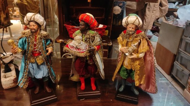 Detalles del productoFiguras de Reyes Magos de estilo napolitano, perfectas para coleccionistas o para decorar en Navidad.Hechas a mano por artesano.26 CMS.
