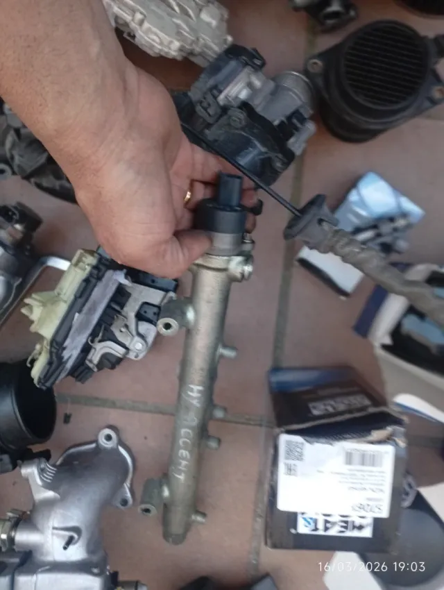 Riel de inyectores para Hyundai Accent. Pieza de recambio para el sistema de combustible. - Fabricado en metal. - Incluye conexiones para los inyectores.