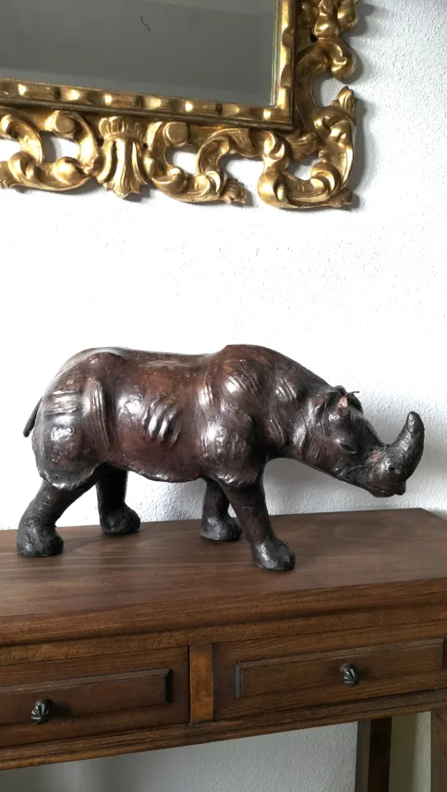 Detalles del productoImpresionante rinoceronte de cuero antiguo de gran tamaño de principios del siglo pasado de la casa Liberty of London una auténtica joya cada vez más difícil de conseguir y más cotizados, quedará perfecto en cualquier sitio y no pasará desapercibido.