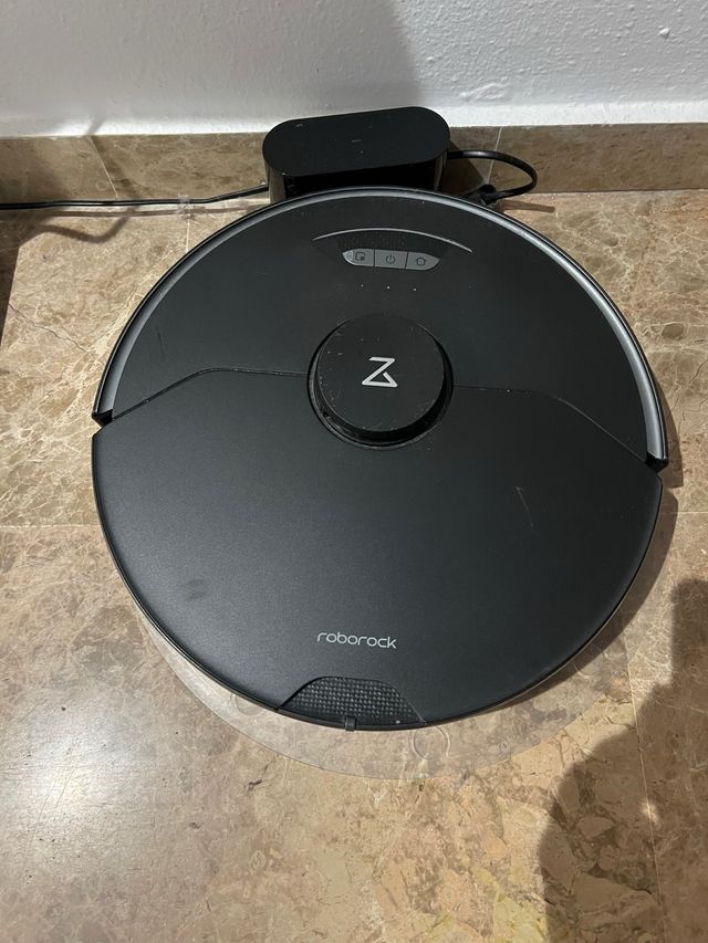 Robot aspirador Roborock S7 Maxv en color negro. Diseñado para una limpieza eficiente y autónoma. - Diseño circular. - Base de carga incluida.